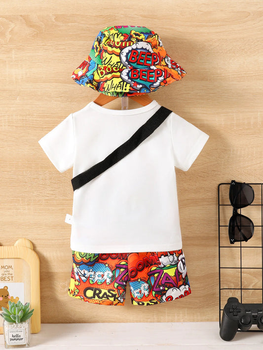 Four-Piece Comic Set with Hat and Crossbody Bag