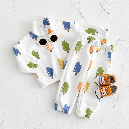 Popsicle Print Infant Boys Winter Set (1-3Y) - Warm Half Zipper Pullover & Pants