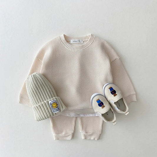 Two-Piece Baby Outfit (0-6 Years) - Waffle Cotton Sweatshirt & Pants Set